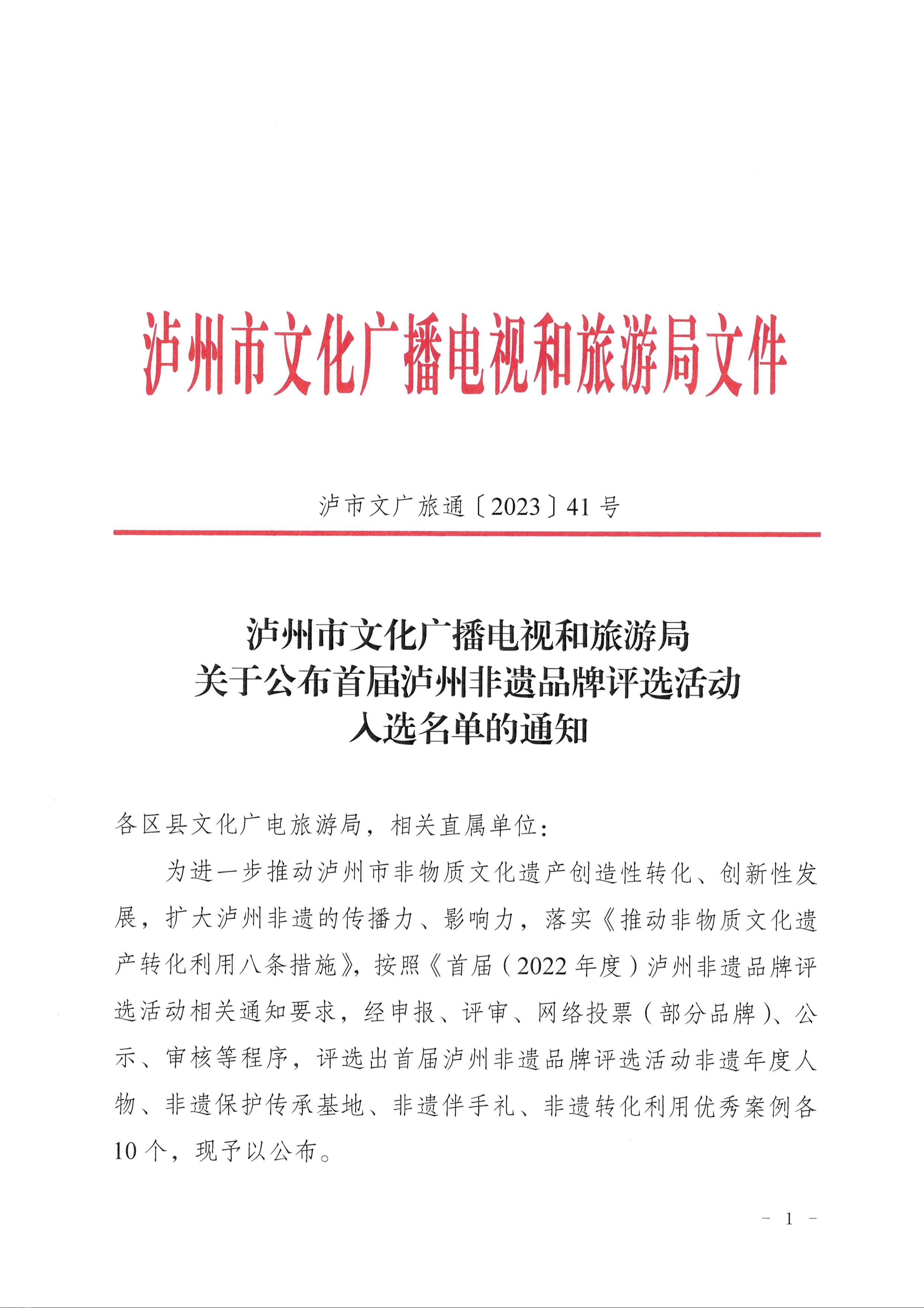 关于公布首届泸州非遗品牌评选活动入选名单的通知(4)